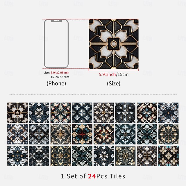 24PCS Peel and Stick Tile Stickers, Vintage Pattern PVC Wall Stickers ...