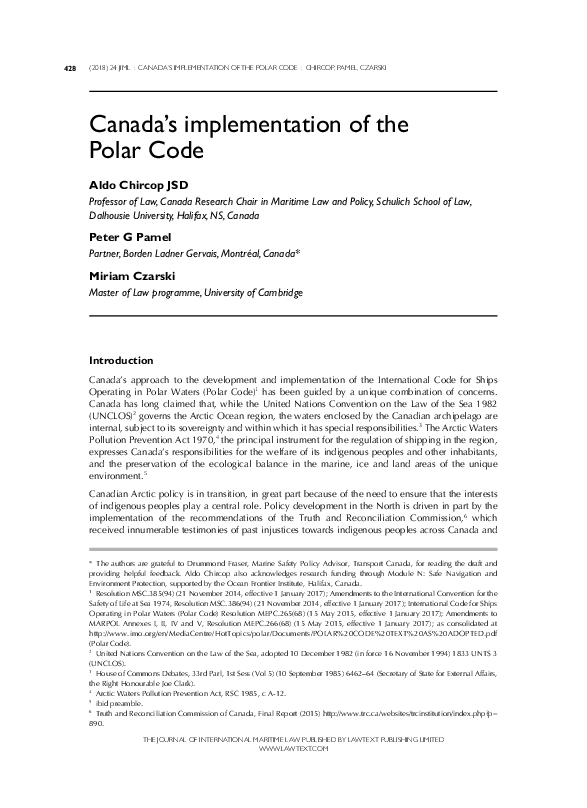 (PDF) Canada's implementation of the Polar Code | Aldo Chircop and ...