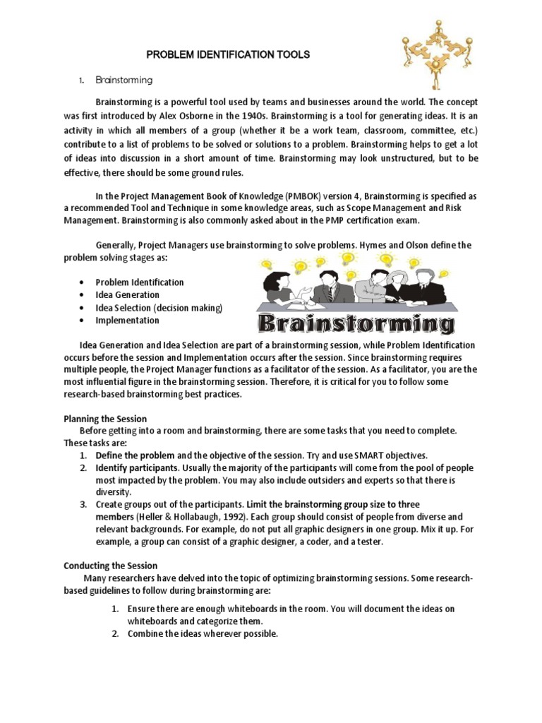 Problem Identification Tools Overview | PDF | Brainstorming | Epistemology