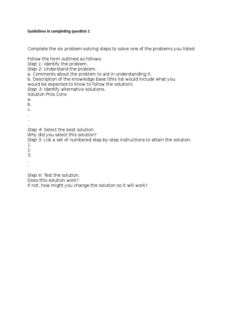 Problem Solving 6 Steps The Six Step Problem Solving Model