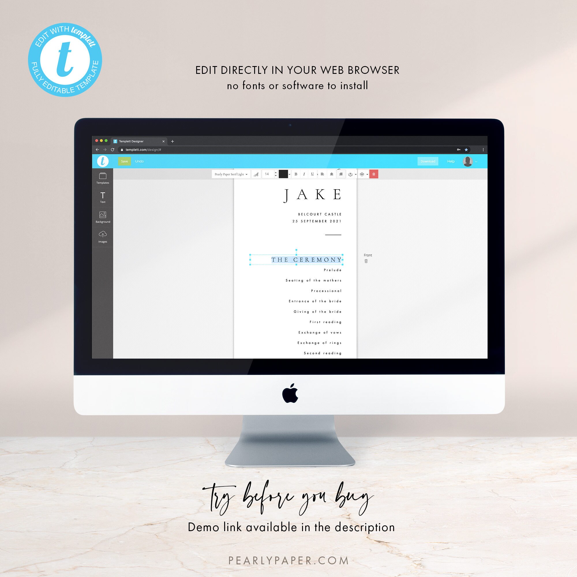 Casual Minimalist Simple Editable Wedding Program Template | Two Sizes ...