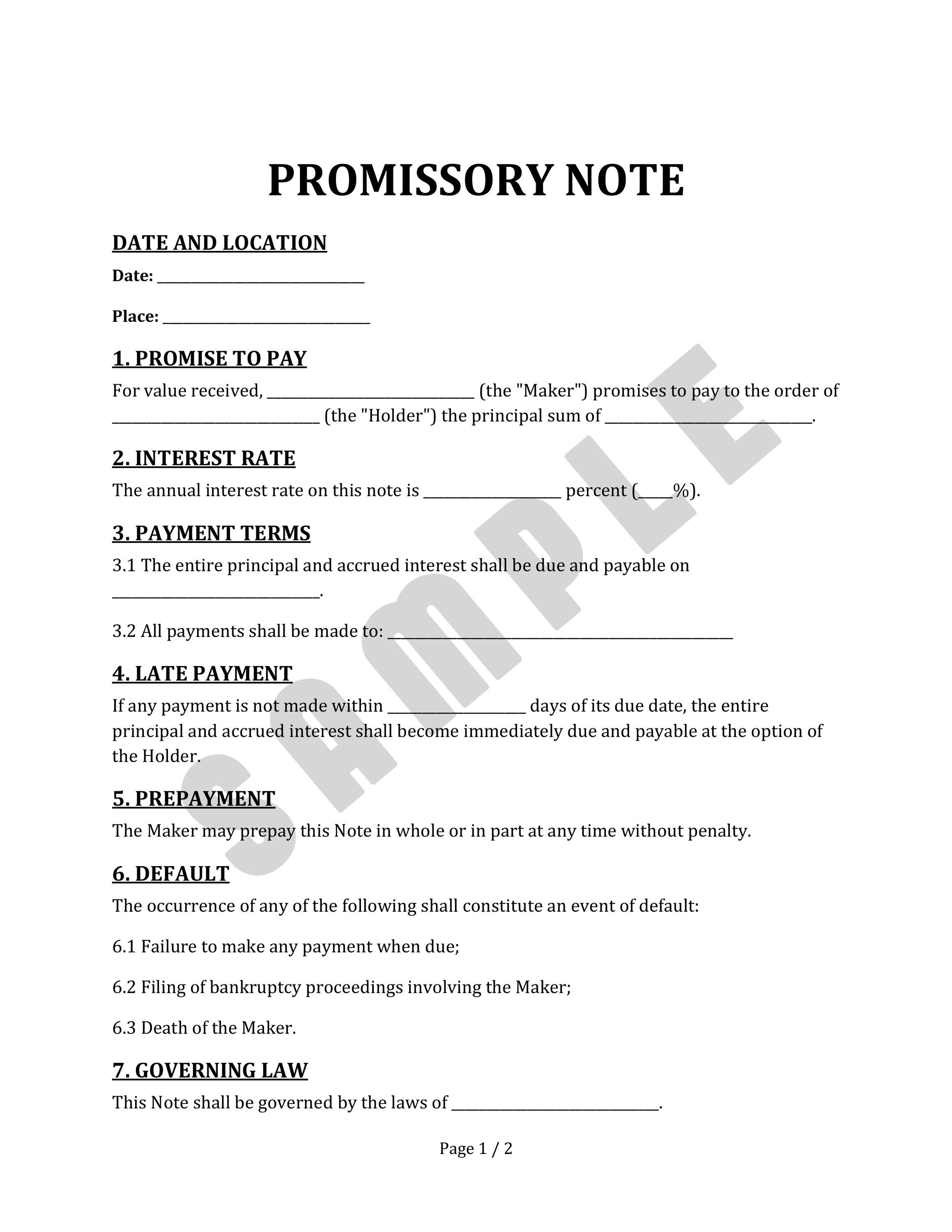 Free Promissory Note Template - PDF & Word | Legal Templates