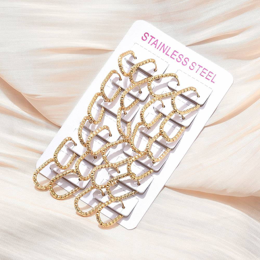 12 Pair 301 Stainless Steel Hoop Earrrings for Women Textured Rectangle ...