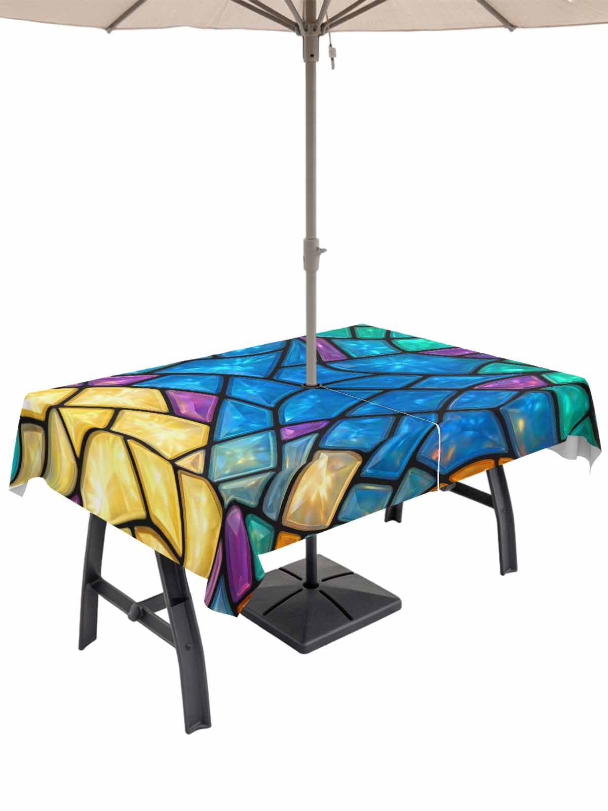 Abstract Colorful Glass Rectangle Outdoor Tablecloth with Umbrella Hole ...