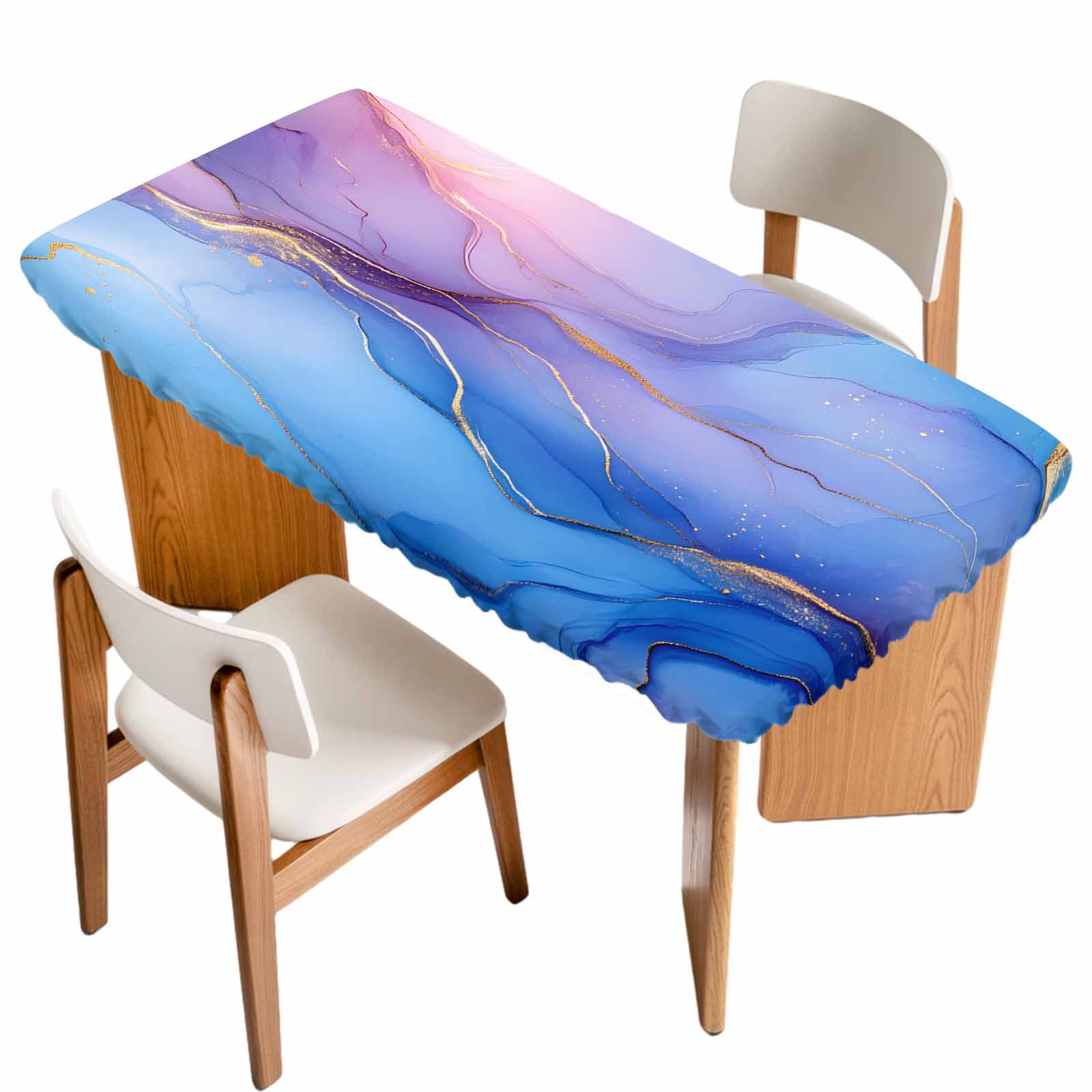 Abstract Marble Texture Fitted Rectangle Tablecloth 32" x 72" Blue Pink ...