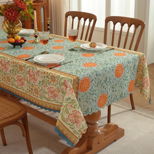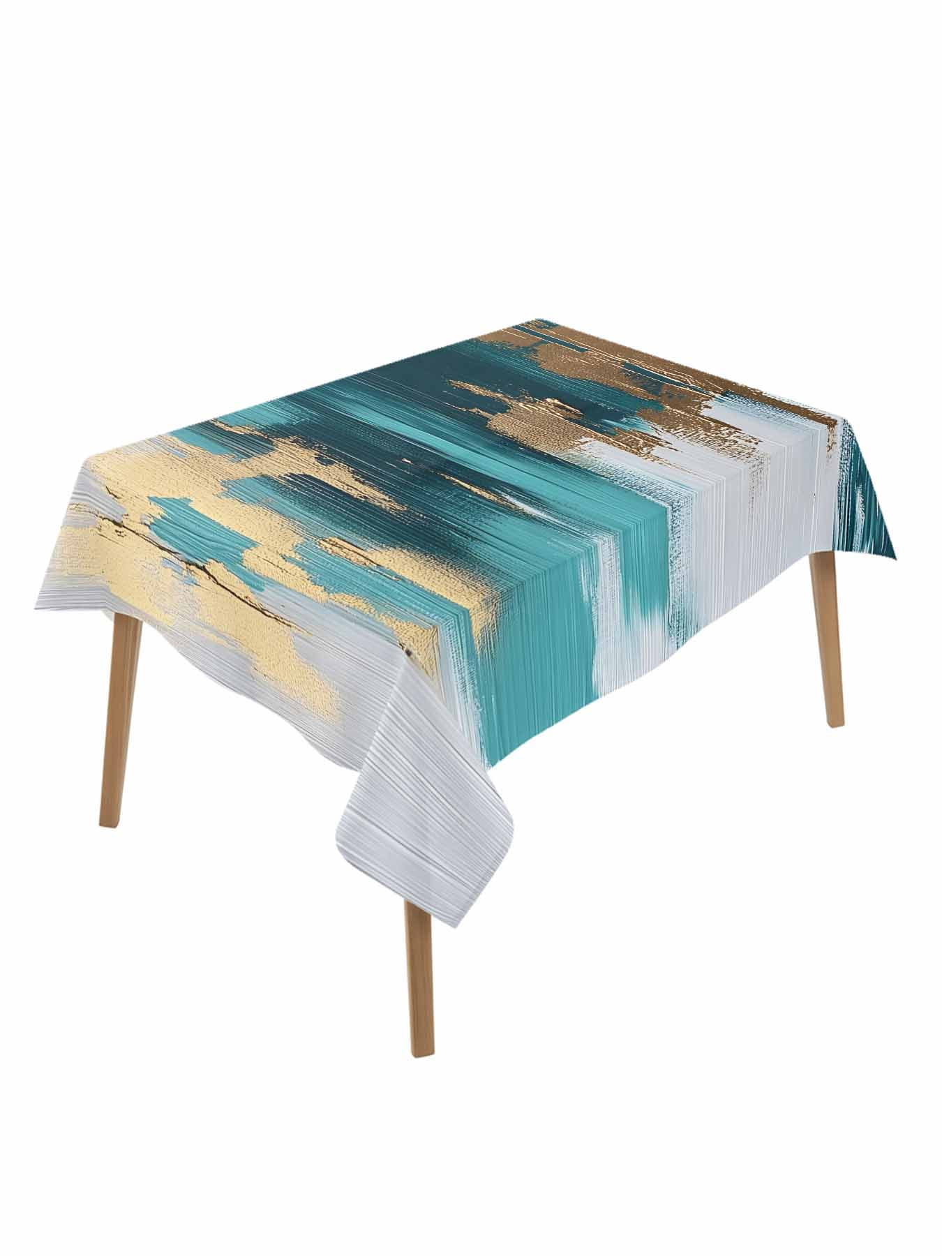 Abstract Teal Green Table Cloth, Waterproof Tablecloth for Rectangle ...
