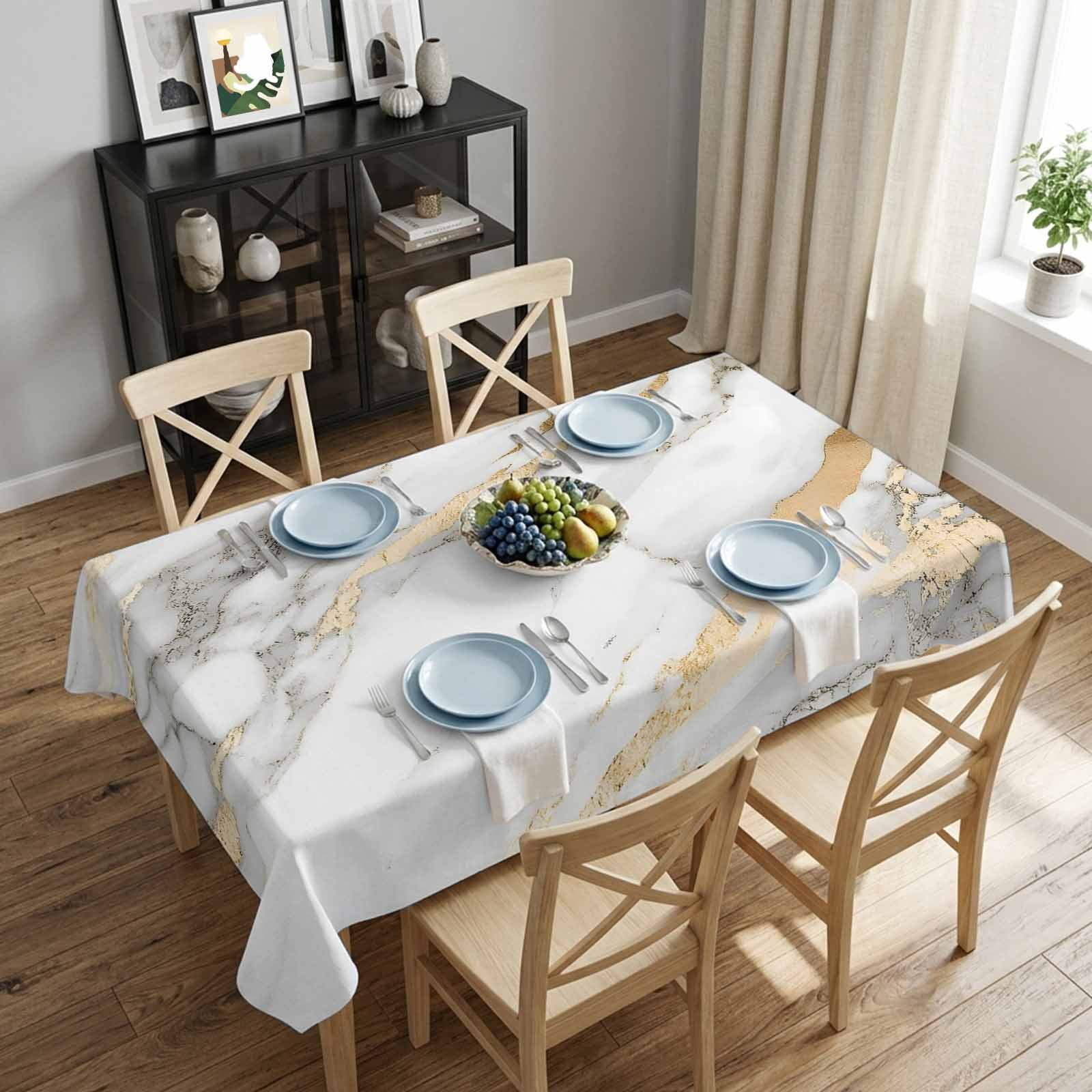 Abstract White Golden Marble Texture Rectangle Tablecloth 52x70 Inch ...