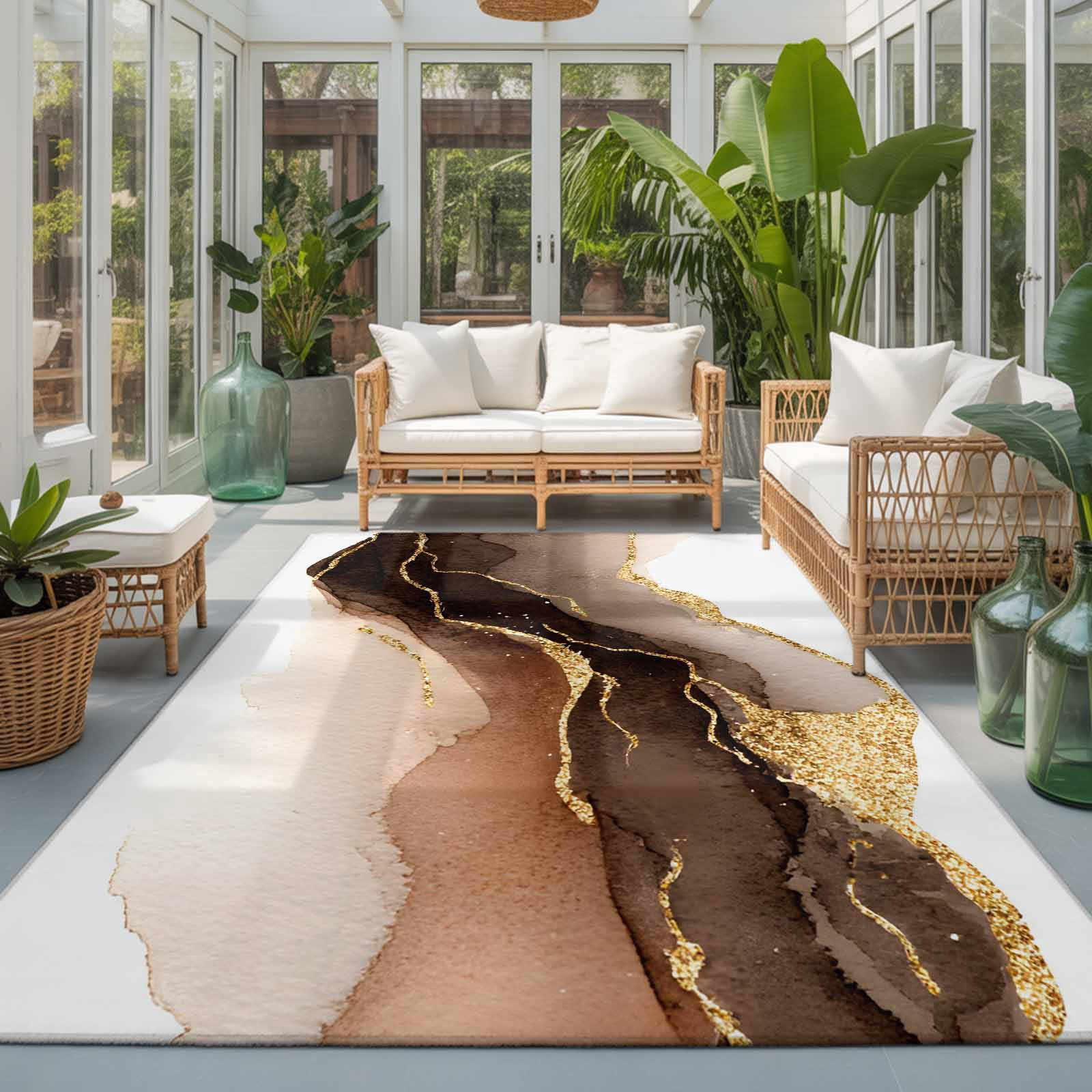 Area Rug 4x6ft, Modern Brown Gold Marble Texture Washable Rugs for ...