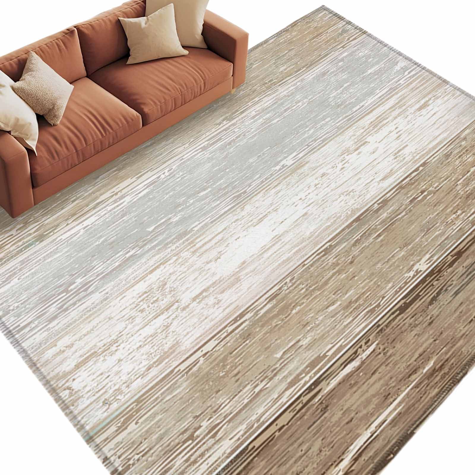 Area Rug 5x8ft, Farmhouse Brown Wooden Grain Washable Rugs for Living ...