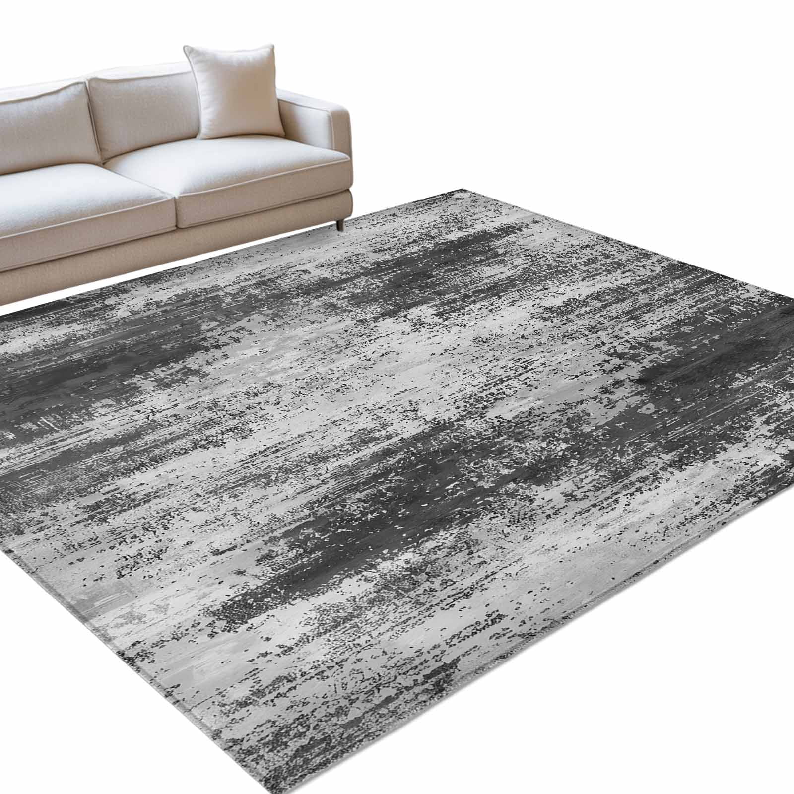 Black Gray Rectangle Rug 6'x9' Abstract Smoky Texture Distressed ...