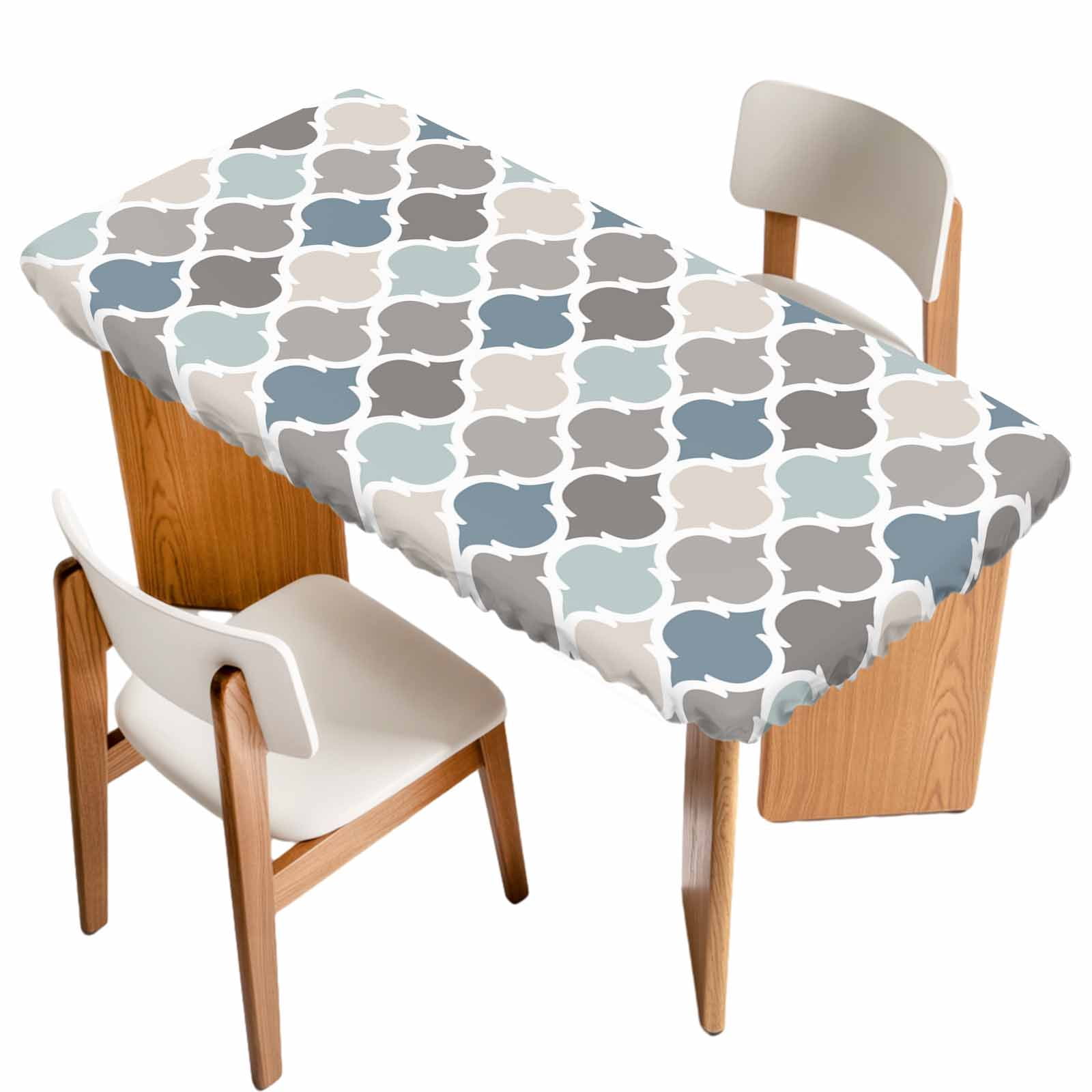 Blue Grey Fitted Rectangle Tablecloth 24" x 50" Morocco Trellis ...