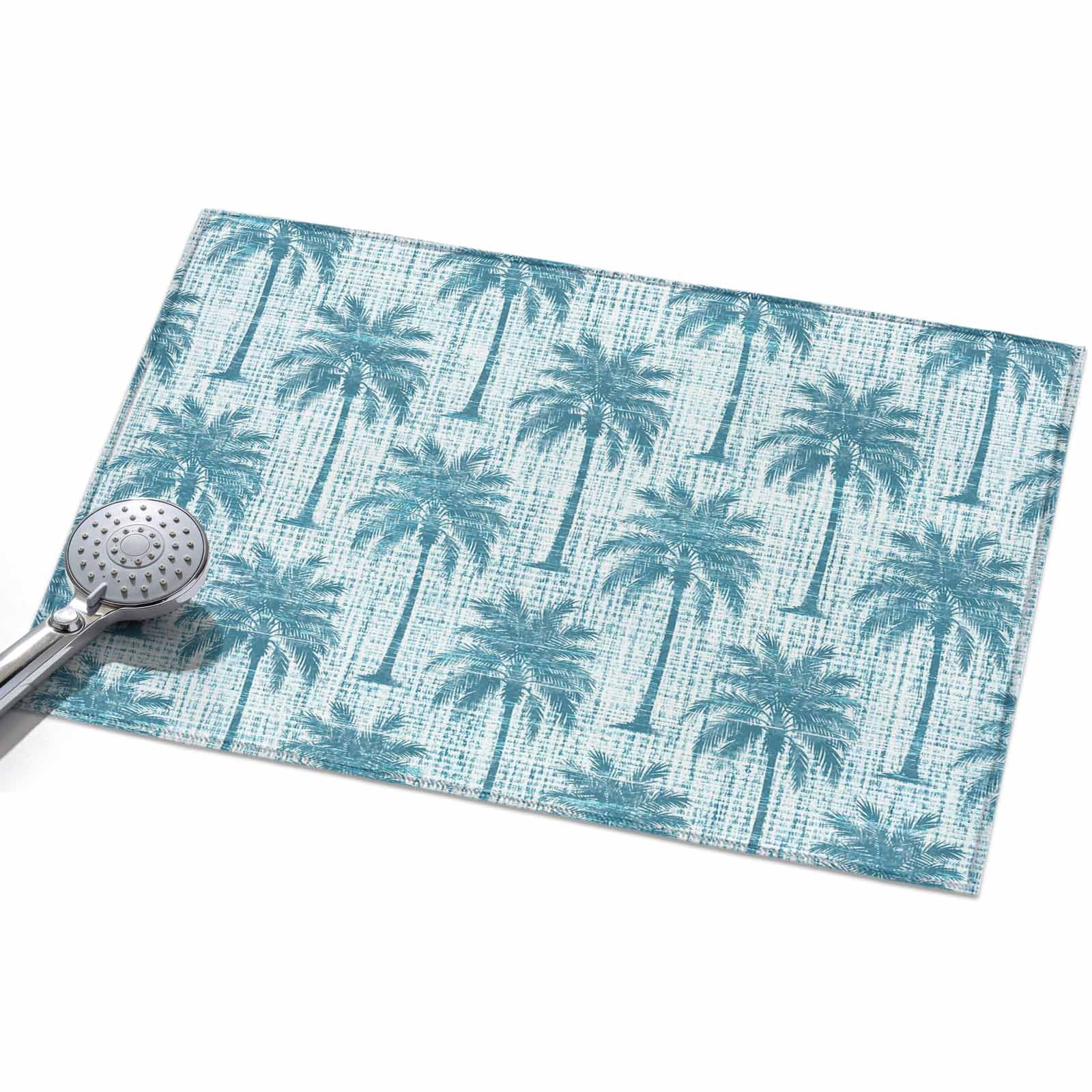 Blue Palm Tree Rectangle Rug 8'x10' Country Linen Texture Tropical ...