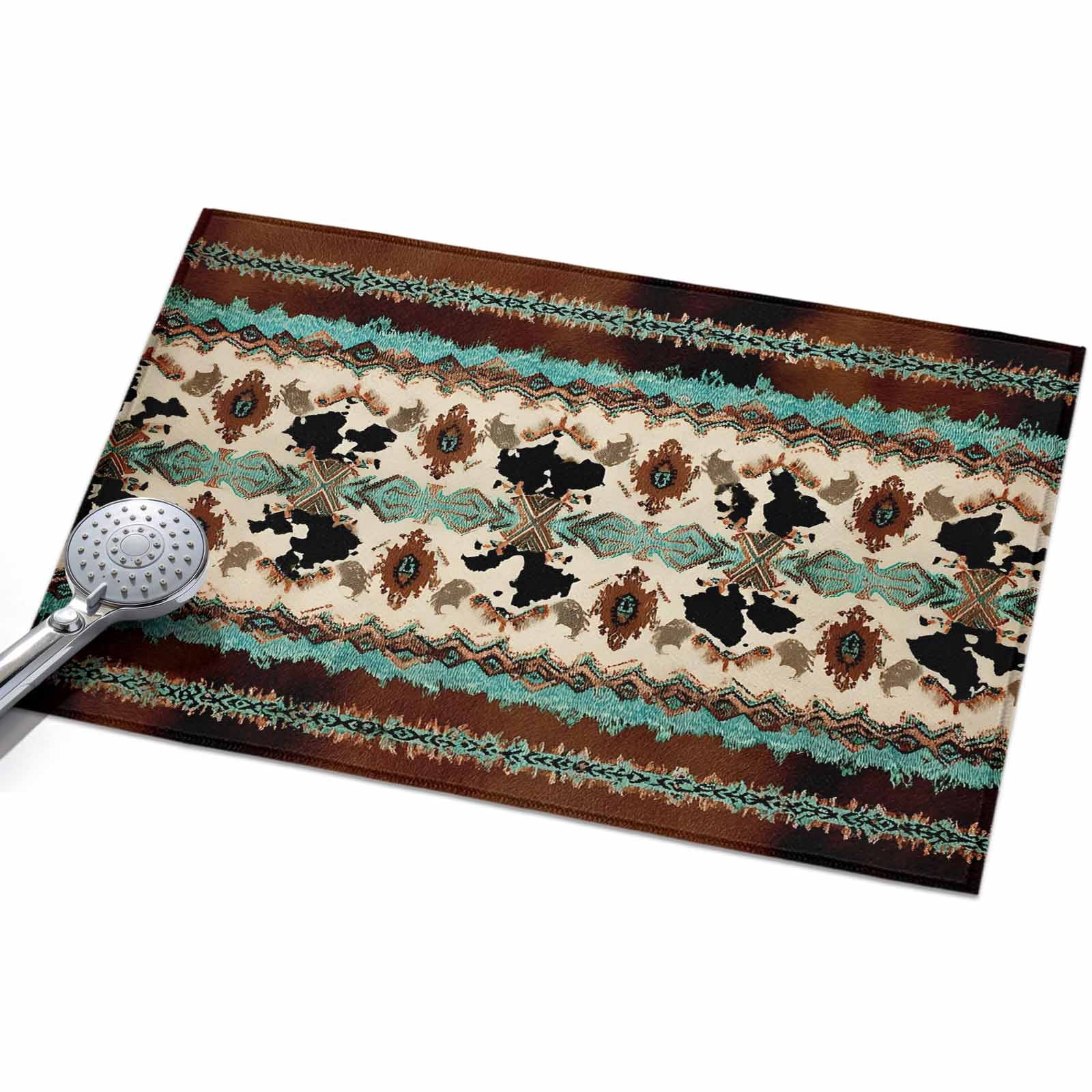 Boho Cowhide Rectangle Rug 2'x3' Western Aztec Tribal Green Brown Cow ...