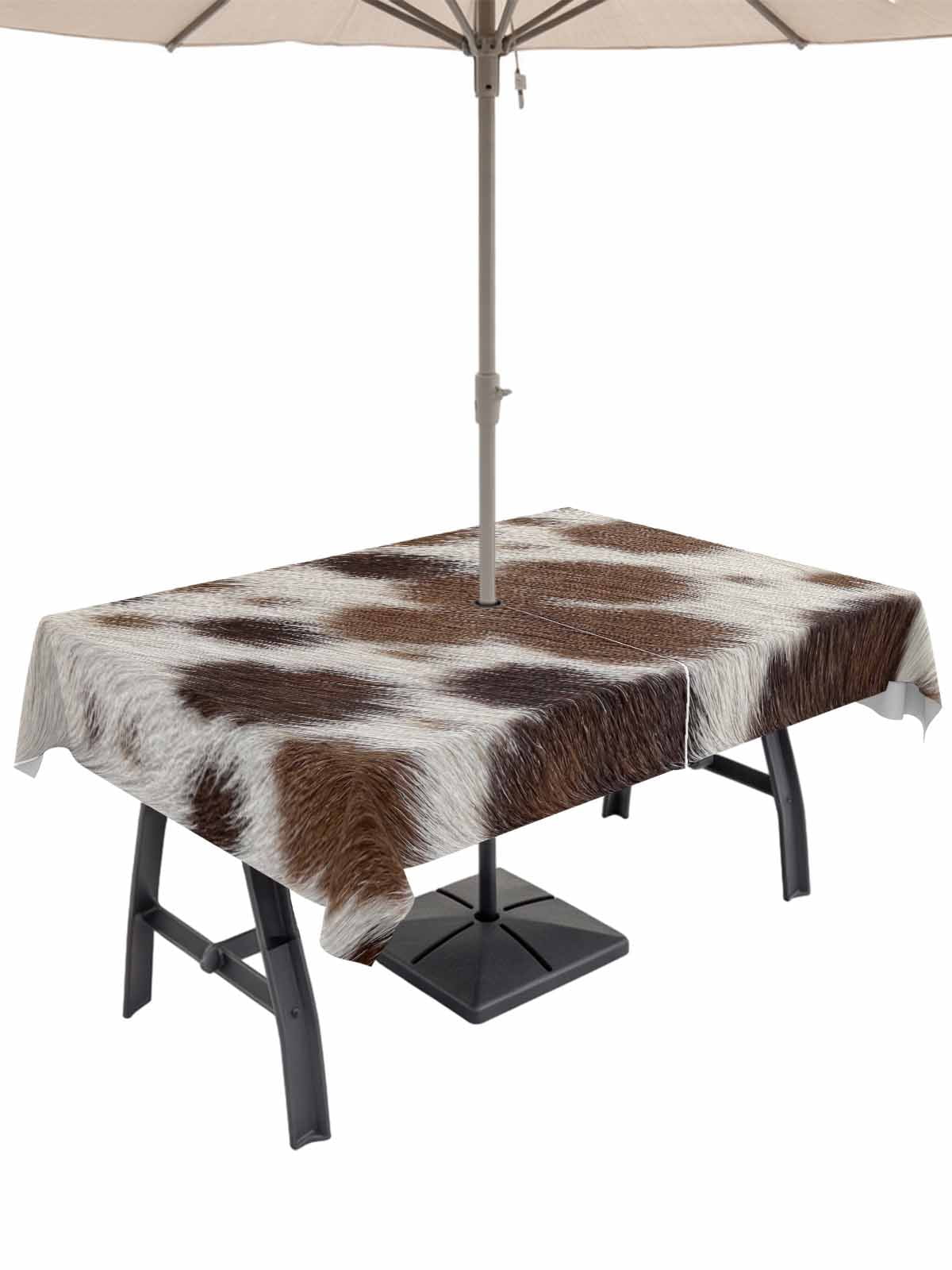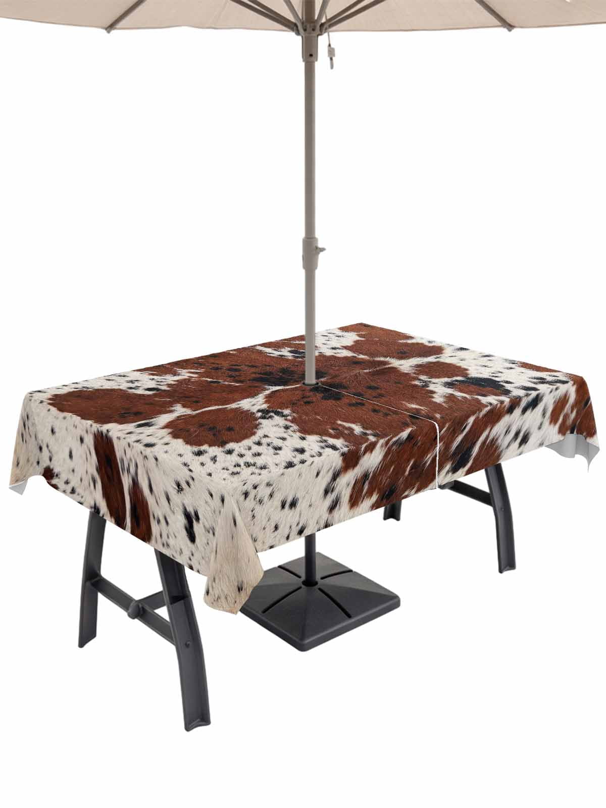 Brown Cowhide Texture Rectangle Outdoor Tablecloth with Umbrella Hole ...