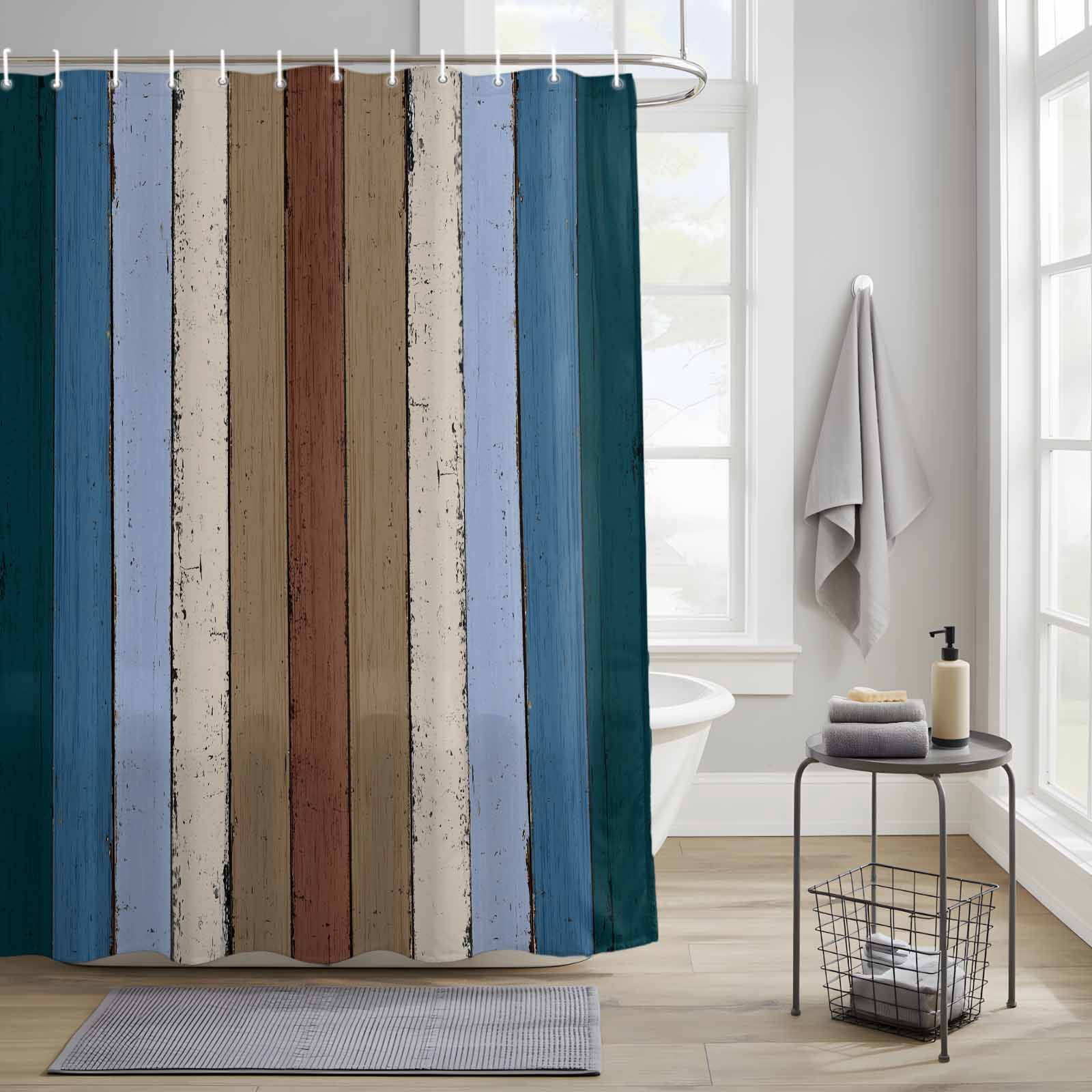 Brown Deep Blue Fabric Shower Curtain for Bathroom Modern Vintage Wood ...