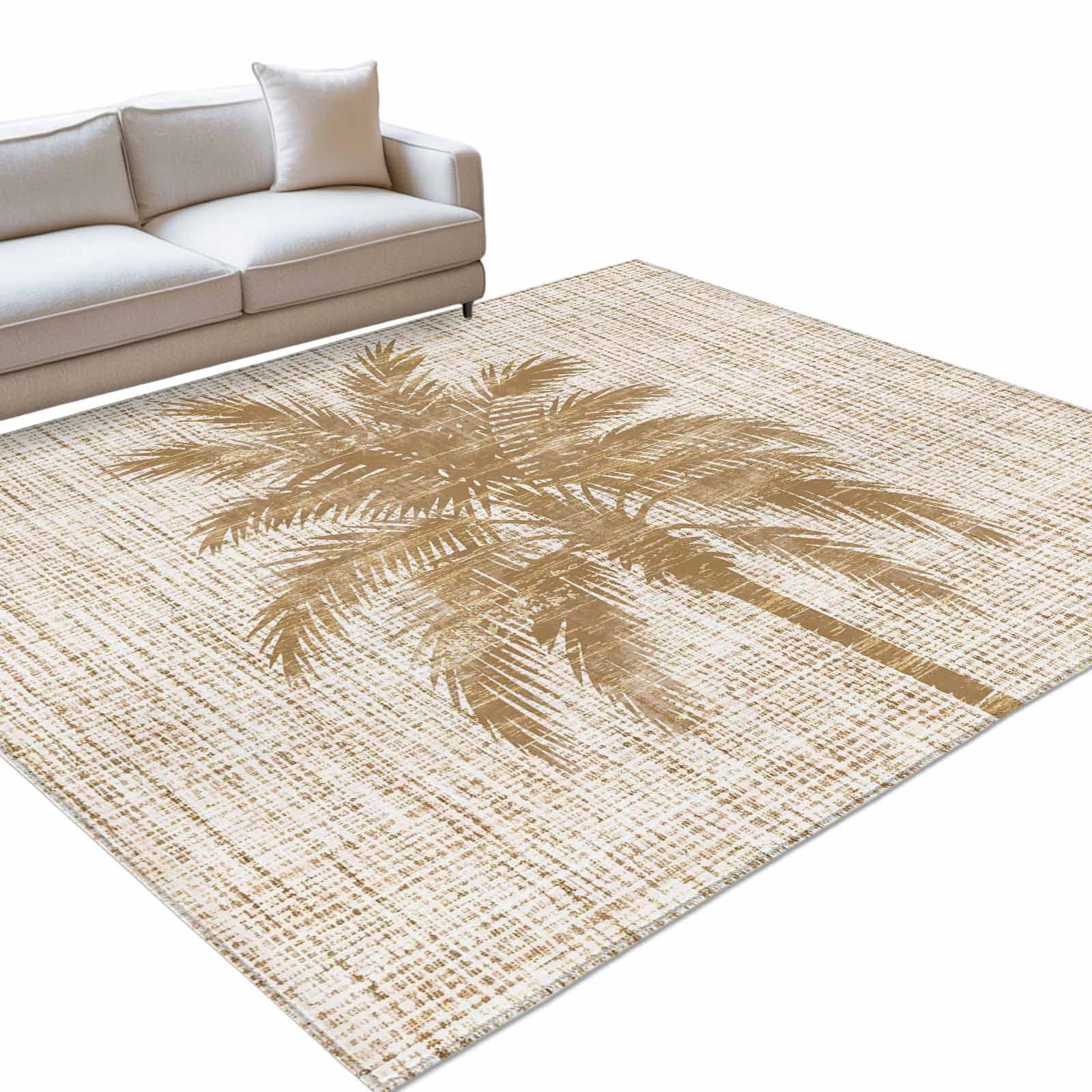 Brown Palm Tree Rectangle Rug 4'x6' Country Linen Texture Tropical ...