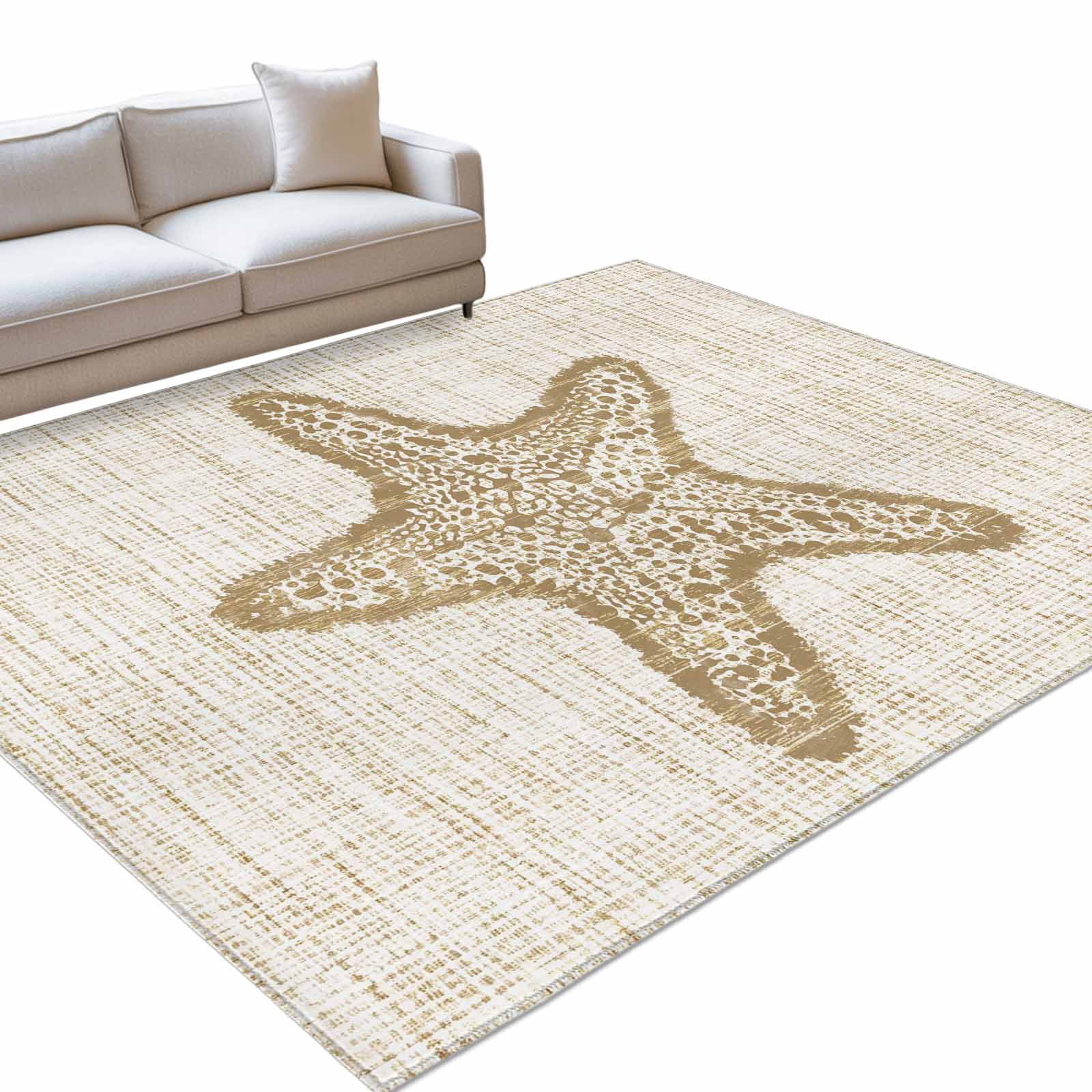 Brown Starfish Rectangle Rug 3'x5' Marine Life Ocean Linen Texture ...