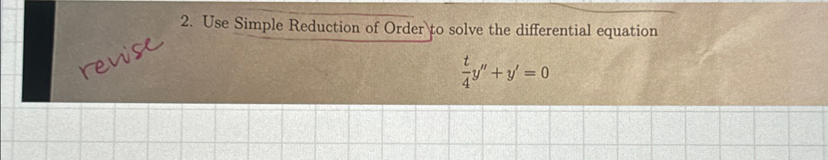 Solved Use Simple Reduction of Order to solve the | Chegg.com