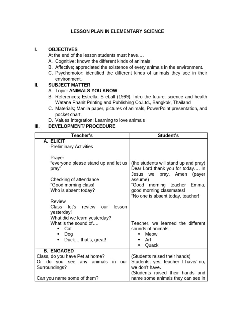 Lesson Plan Sample For Elementary Science | PDF Template