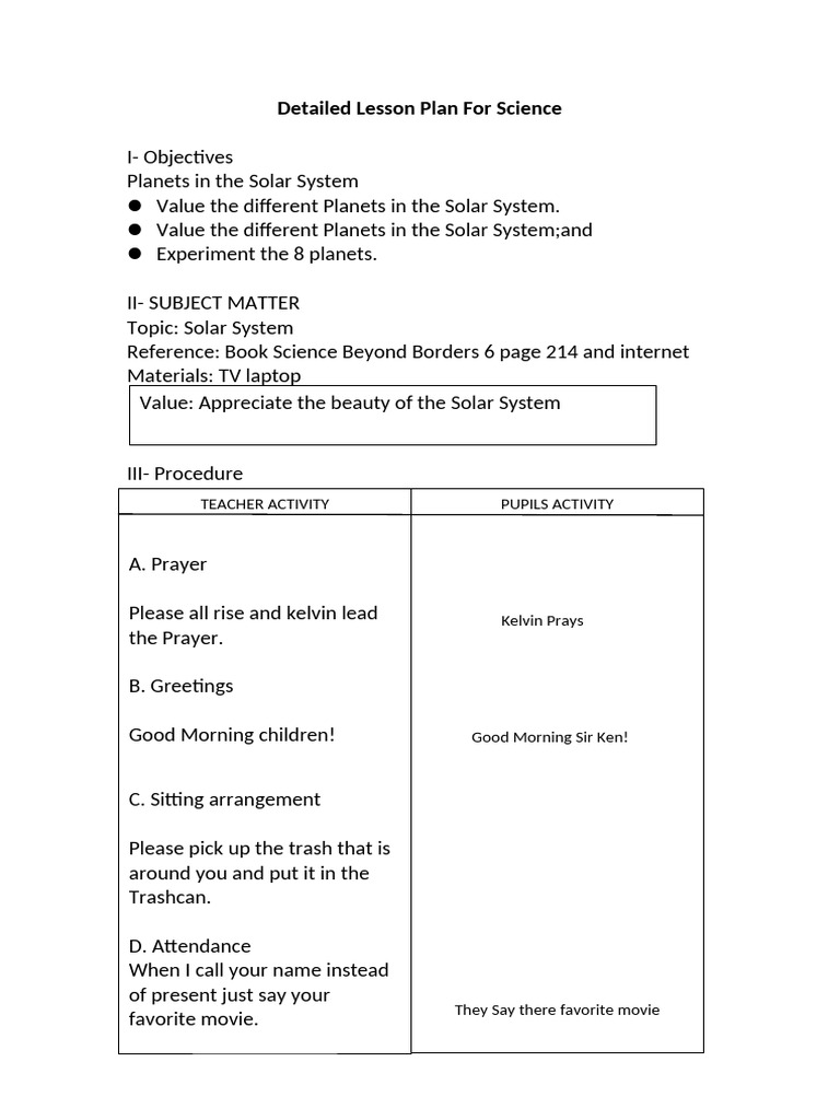 detailed-lesson-plan-science.docx | Solar System | Planets