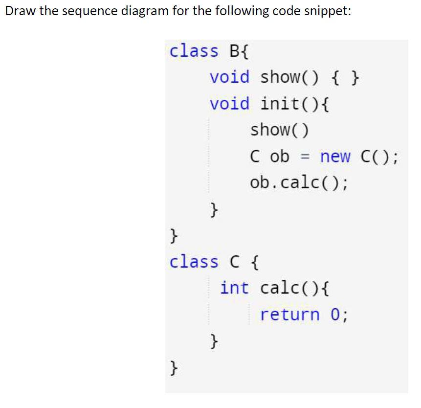 Solved Draw the sequence diagram for the following code | Chegg.com