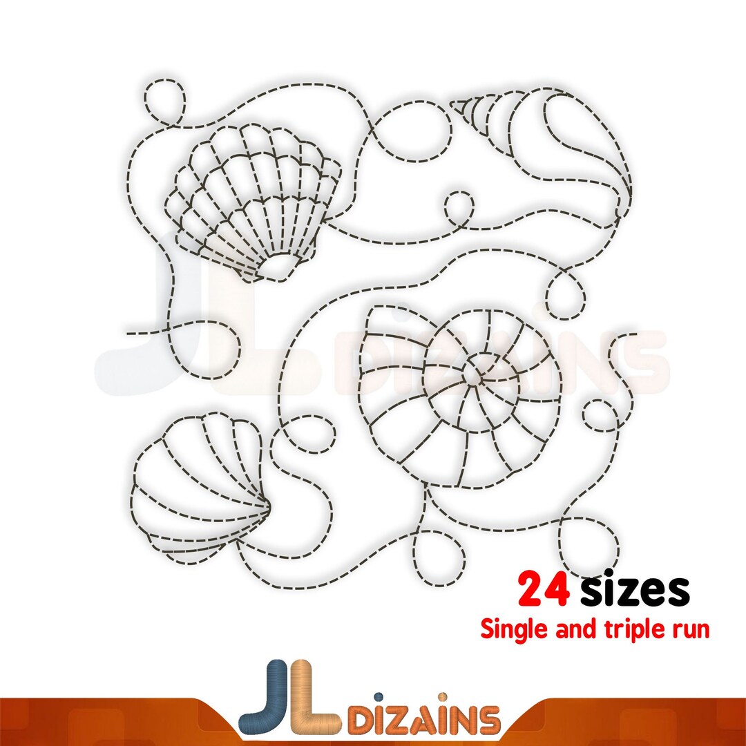 Seashells Quilting Embroidery Design. Edge to Edge Quilting Embroidery ...