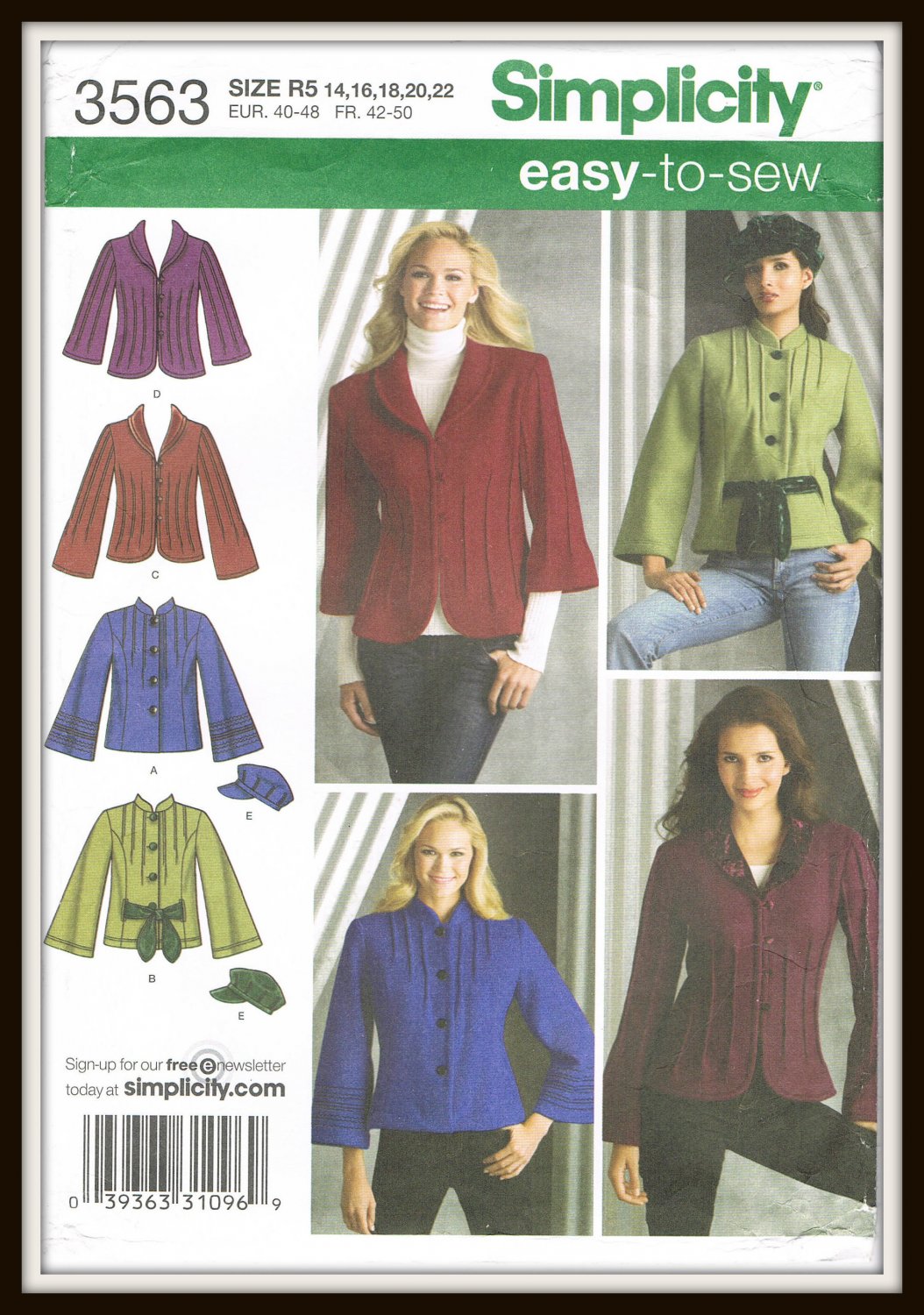 Simplicity Easy To Sew Pattern No. 3563 Misses Jackets & Hat Sizes 14 to 22