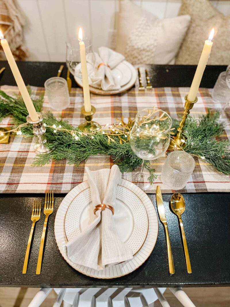 Simple Holiday Table Setting in Pine and Gold