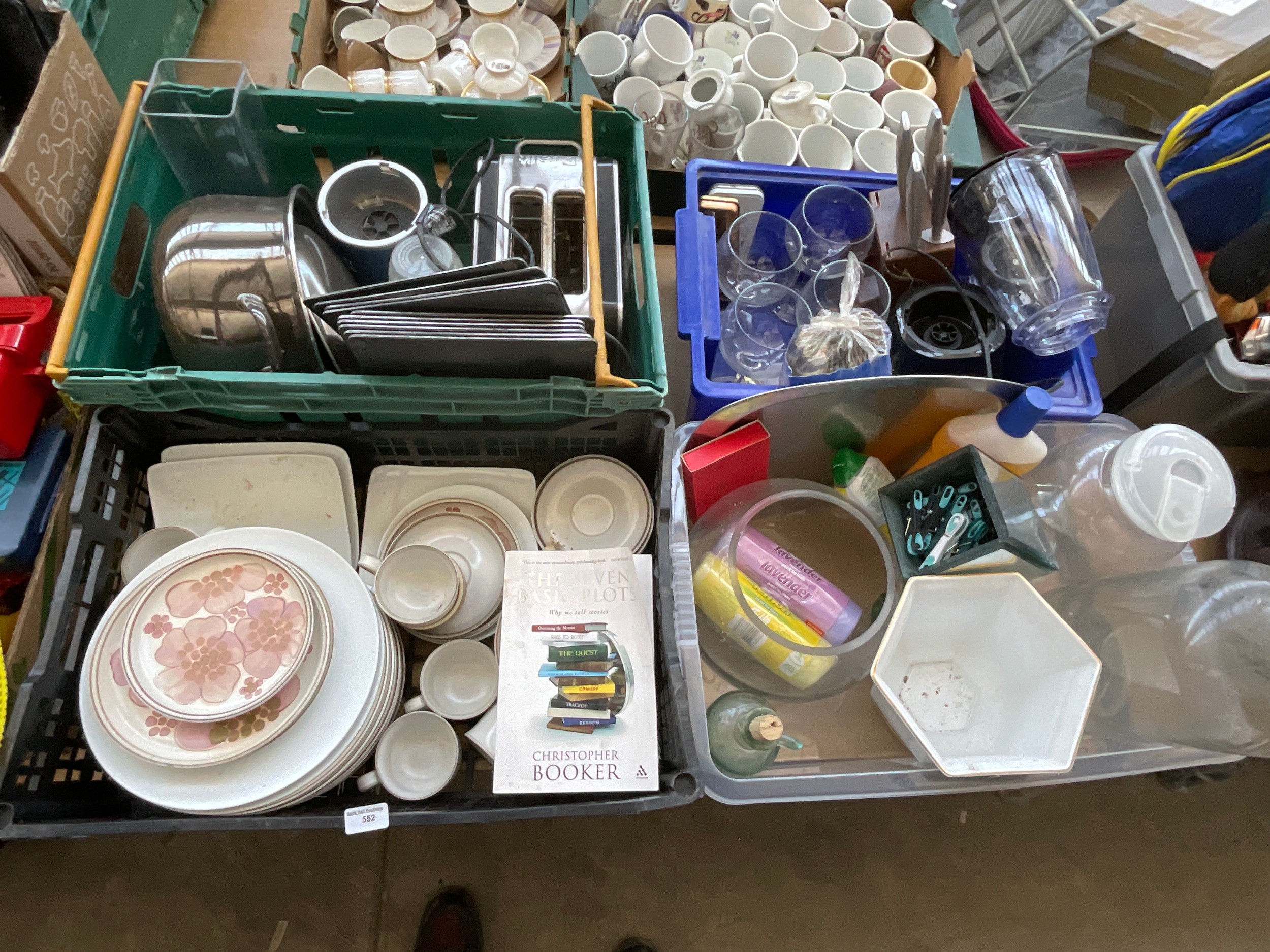 Four boxes incv Demi John, toaster, table mats, blender, glasses, etc