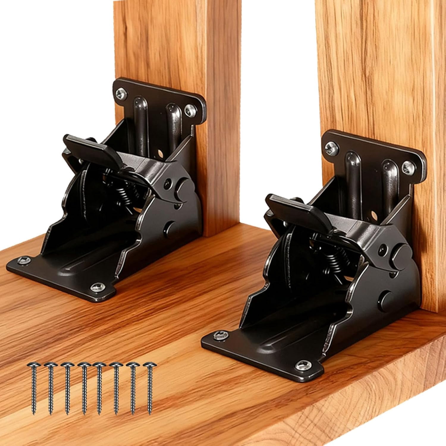 2 Pack Black Folding Brackets, 0-180° Self-Lock Hinges, Heavy-Duty ...