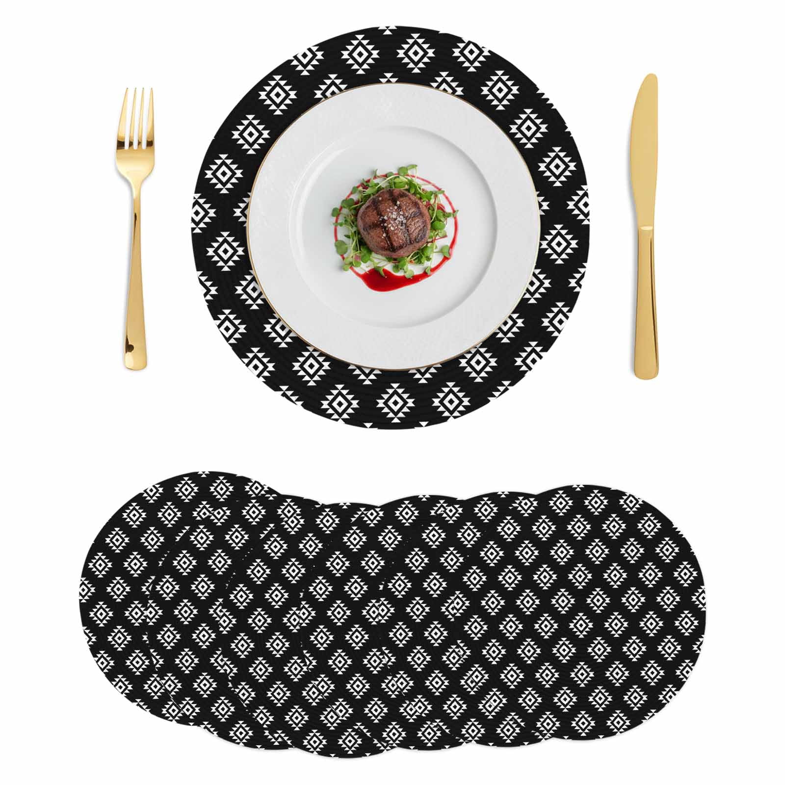 Black Boho Geometric Round 15 Inch Placemats Set of 6, Retro Simple ...