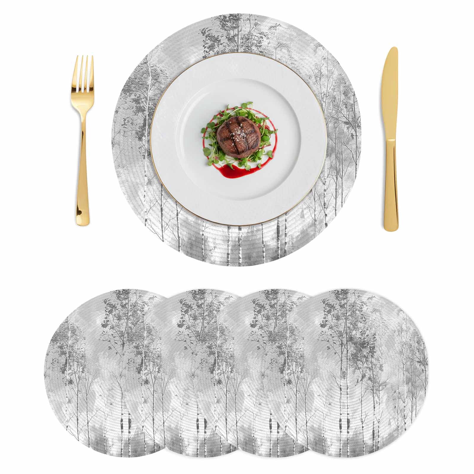 Contemporary Grey Tree Round 15 Inch Placemats Set of 4, Abstract Art ...