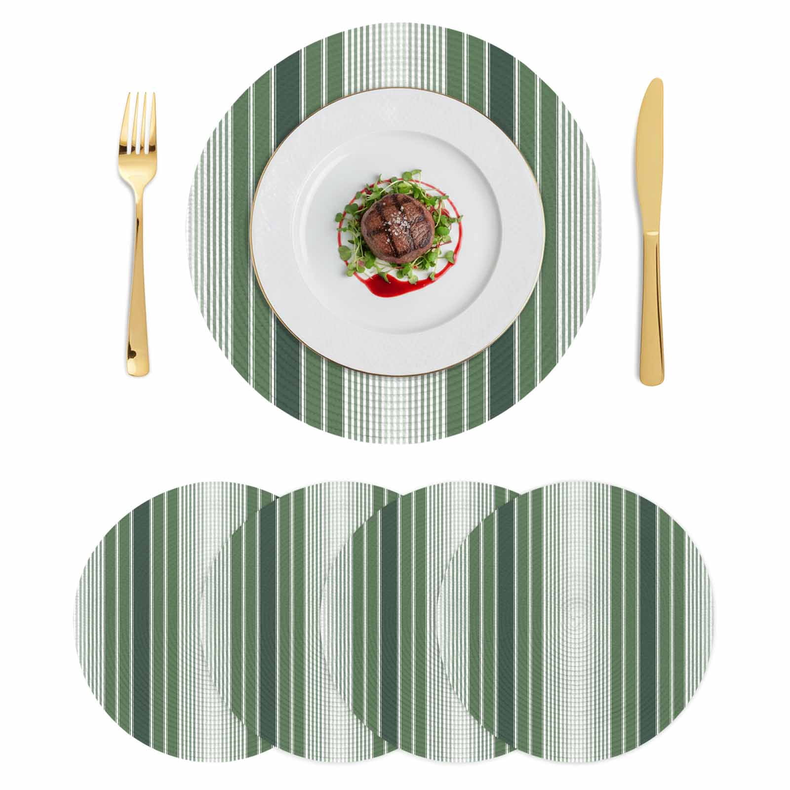 Dark Green Ombre Stripe Round 13 Inch Placemats Set of 4, Farmhouse ...