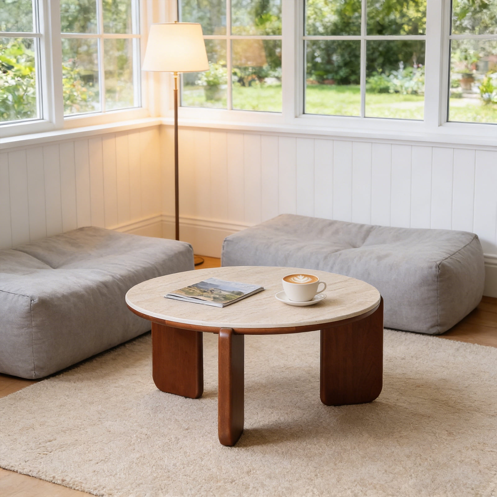 Mid-Century Modern Low Coffee Table, 31.5" Round Solid Wood Tripod with ...