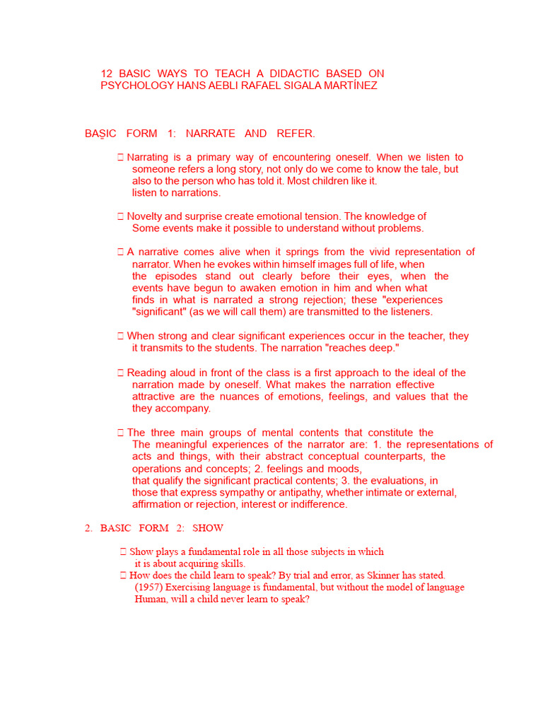 12 Basic Teaching Methods According To Hans Aebli | PDF | Experience ...
