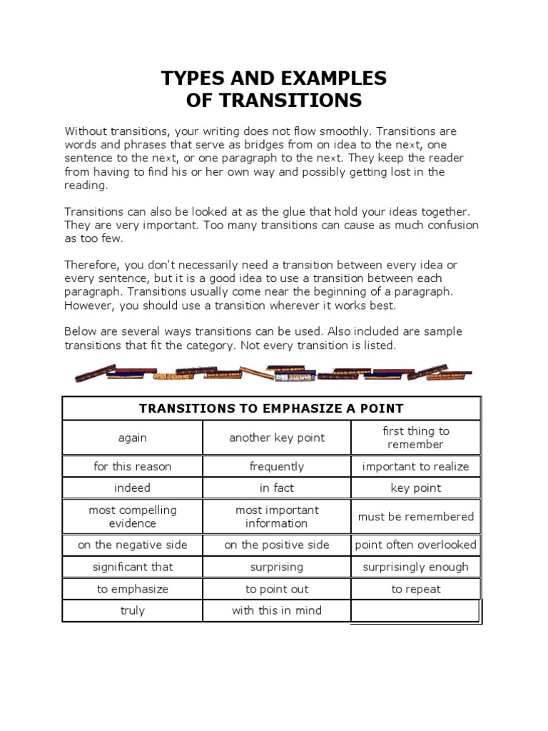 Types and Examples of Transitions | PDF | Sentence (Linguistics ...