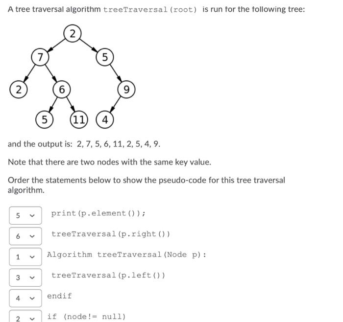 Solved A tree traversal algorithm treeTraversal (root) is | Chegg.com