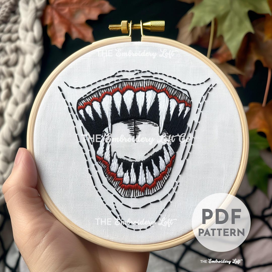 Vampire Hand Embroidery Pattern, Vampire, Halloween Embroidery Pattern ...