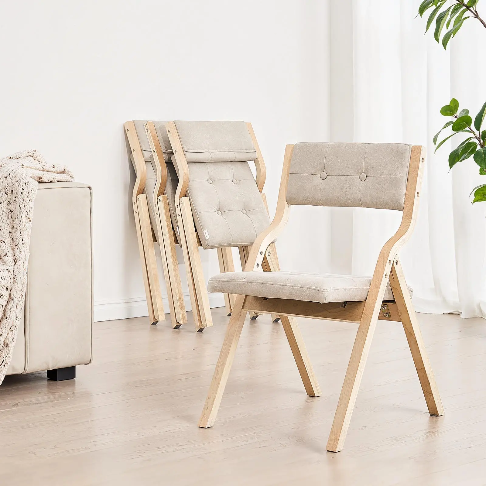 VEVOR Wooden Folding Chairs with Cushion, Set of 4, Portable Foldable ...
