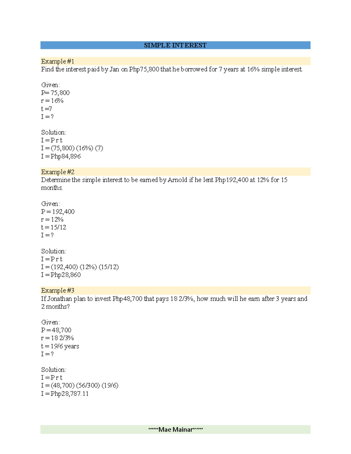 2022 August 18 - examples of simple interest - SIMPLE INTEREST ...