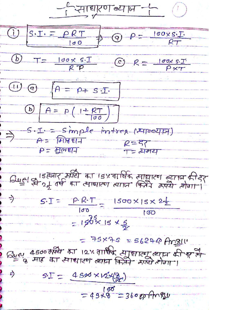 Simple Interest ( साधारण ब्याज ) Notes pdf Download
