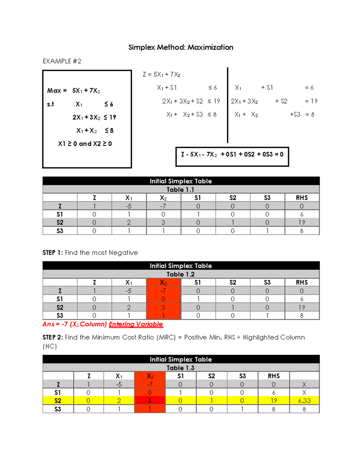 Simplex-Method-2 - Simplex Method: Maximization EXAMPLE # 2 Z = 5X 1 ...