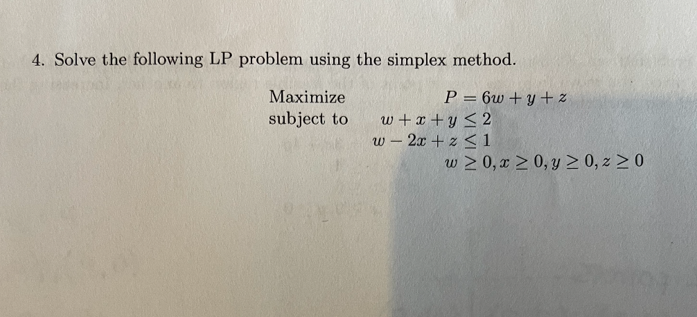 SOLVED: Solve the given linear programming problem using the simplex ...