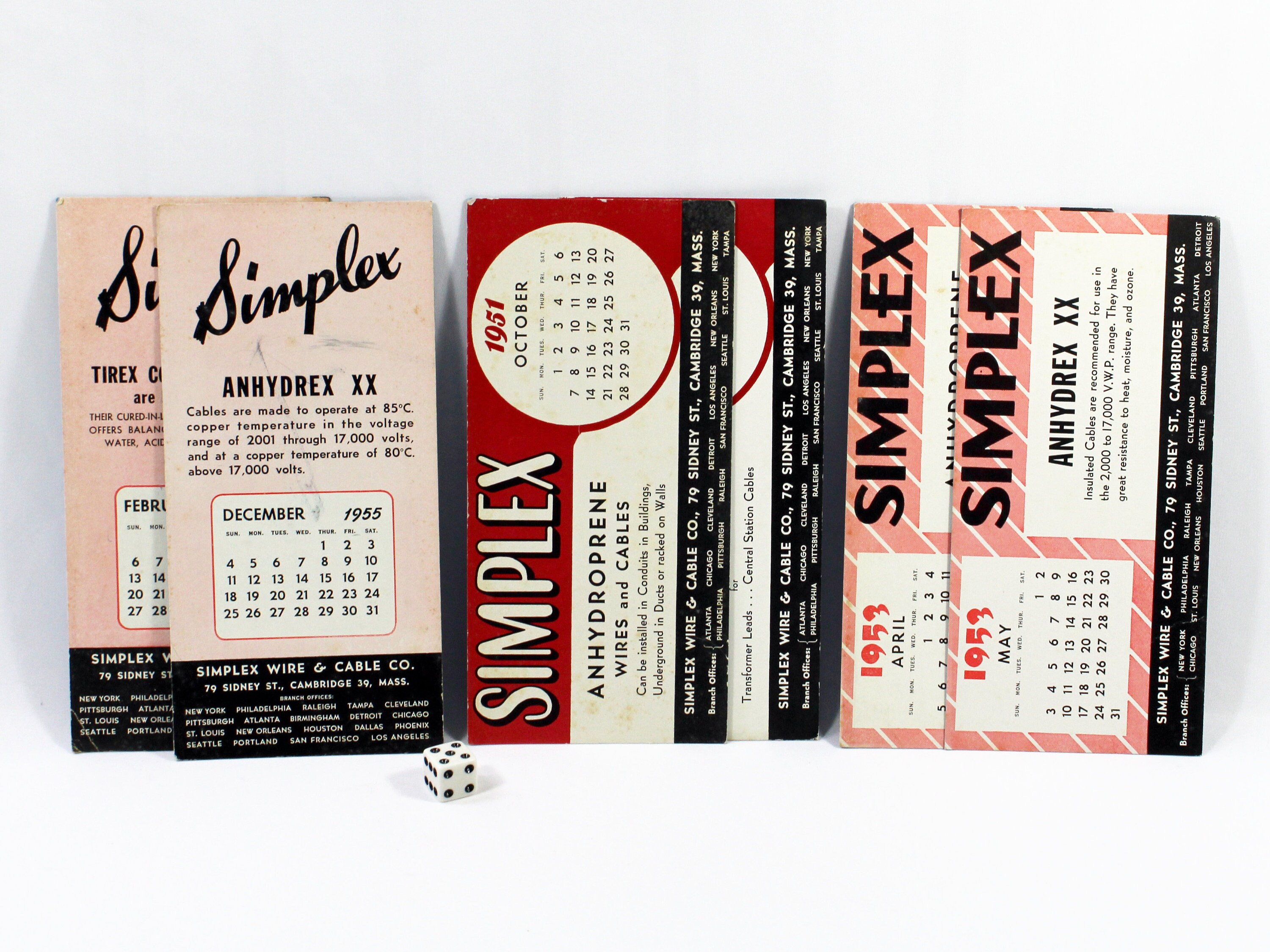 Six Vintage Simplex Wire & Cable Advertising Ink Blotter Calendar Cards ...