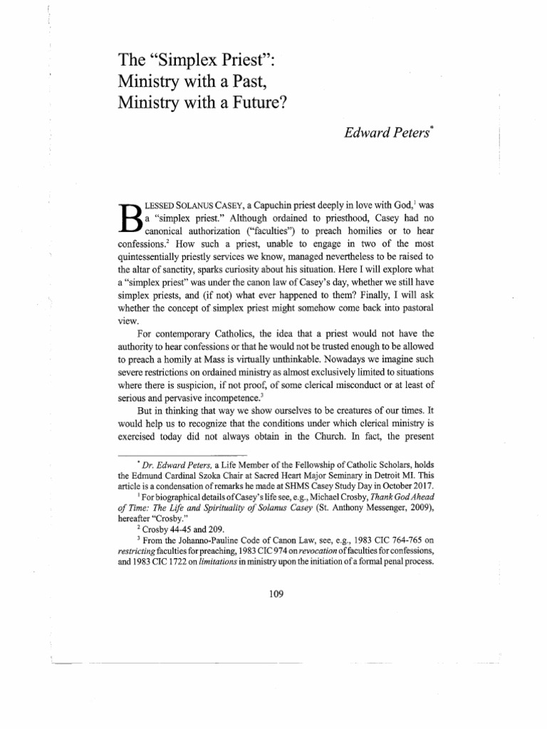 Abbey Roads: Blessed Solanus, Simplex Priest