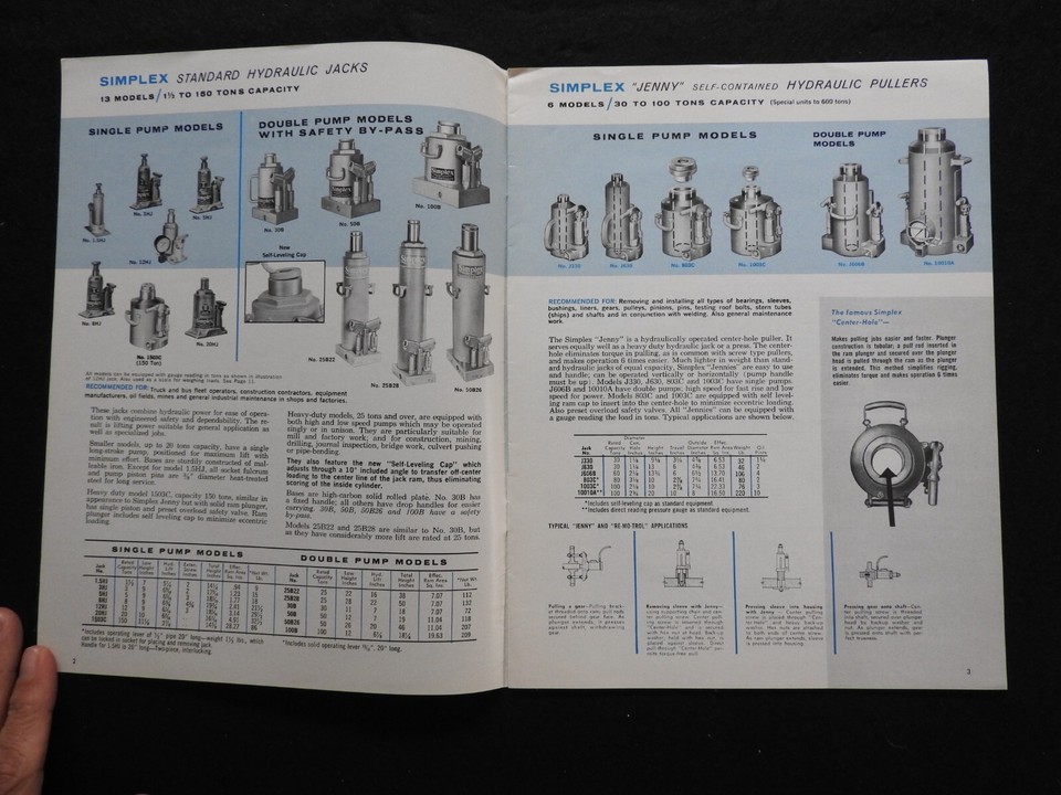 1966 Templeton Kenly & Co Simplex Jacks & Pullers Engineering Brochure ...
