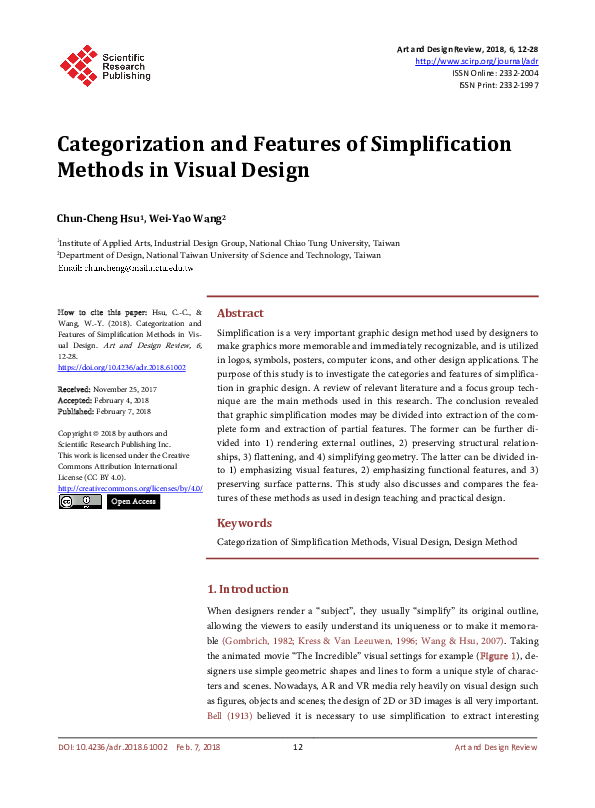Categorization and Features of Simplification Methods in Visual Design