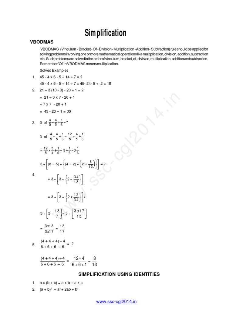 Simplification | Simplification Math Tricks| BODMAS Rules SSC CGL MTS ...