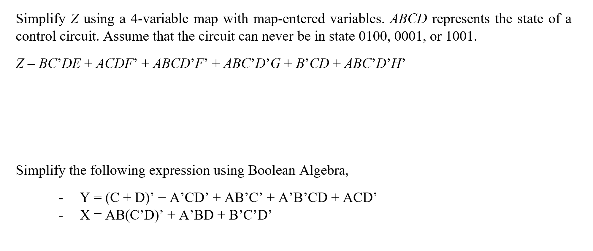 Solved Simplify Z using a four-variable map with map-entered | Chegg.com