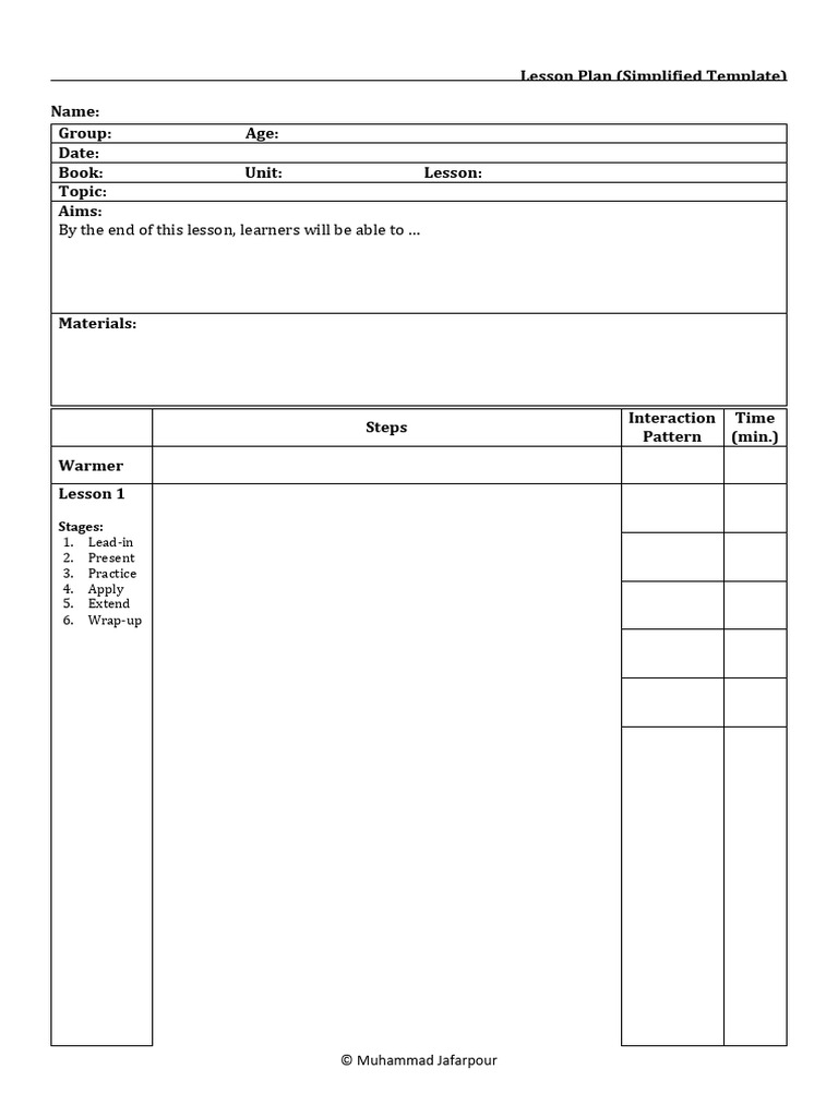 Print-friendly Blank Simple Lesson Plan Template - My English Pages